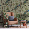 Our Peacock Woods Wallpaper in sage transforms any room into a serene woodland retreat. Featuring a soft sage-olive backdrop, cascading trees, delicate florals, and elegant peacocks standing proudly, this design brings nature indoors with an air of timeless sophistication. The intricate detailing and layered tones create depth and movement, making it perfect for feature walls or entire rooms. Its gentle green palette adds warmth and calm, allowing the wallpaper to complement natural woods, neutral furnishings, and textured fabrics, creating a space that feels both majestic and inviting.