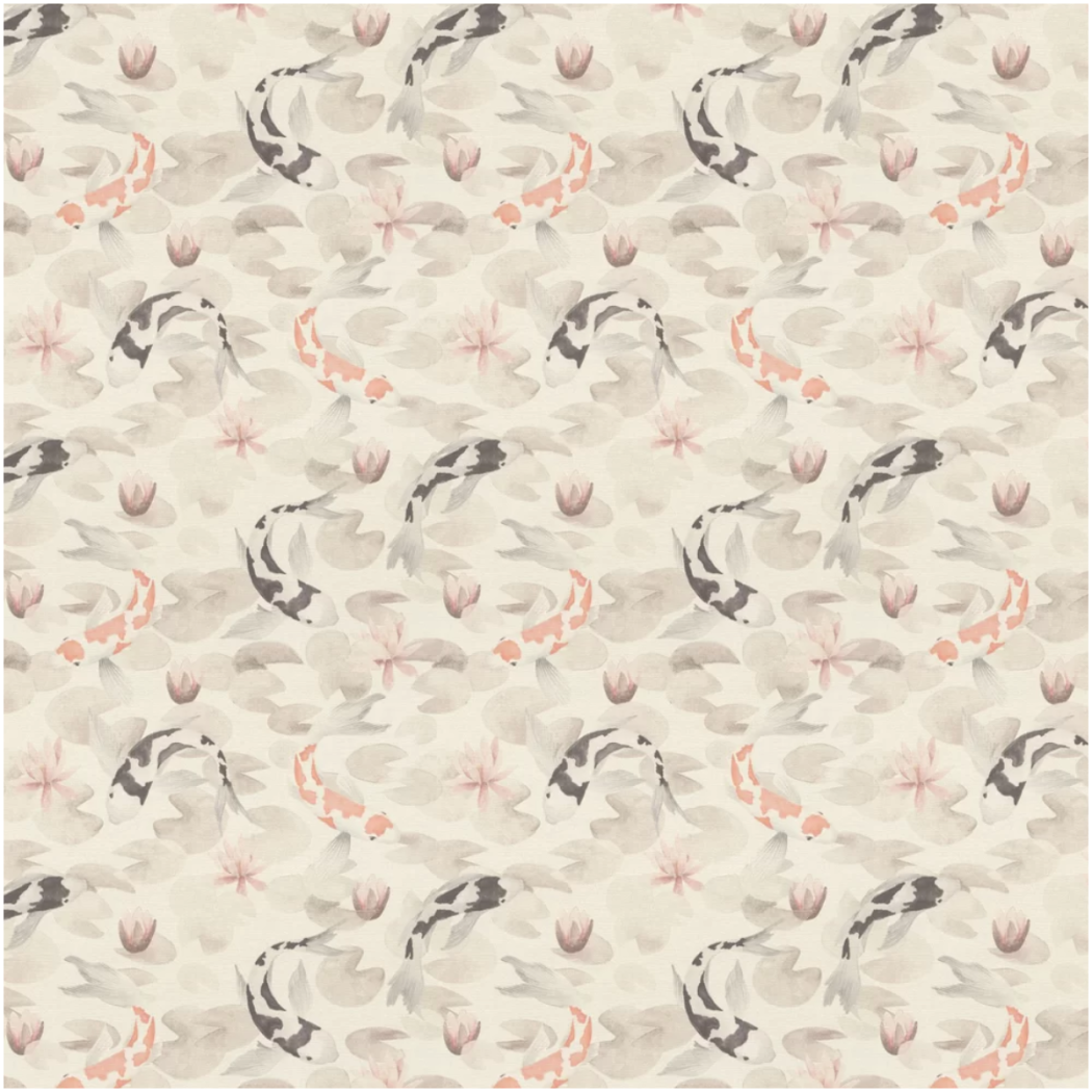 Our Kimono Koi Fish Wallpaper in Natural Multicoloured is a serene, artful design inspired by traditional Japanese motifs. The thick, textured surface sits on a pale linen-style backdrop, beautifully adorned with graceful carp swimming among delicate water lilies. Calm yet characterful, this wallpaper brings a sense of balance, movement, and understated elegance to your space.