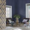 The Navy Gold Damask Wallpaper exudes timeless elegance with a luxurious modern twist. Set against a rich matte navy textured backdrop, intricate damask swirls in shimmering gold bring a refined sense of opulence to the design. The subtle glitter detailing catches the light beautifully, adding depth and a soft glow without overwhelming the space. Perfect for creating a sophisticated feature wall in living rooms, bedrooms, or dining areas, this wallpaper combines classic styling with contemporary glamour for a truly standout finish. This also matches WL-542356