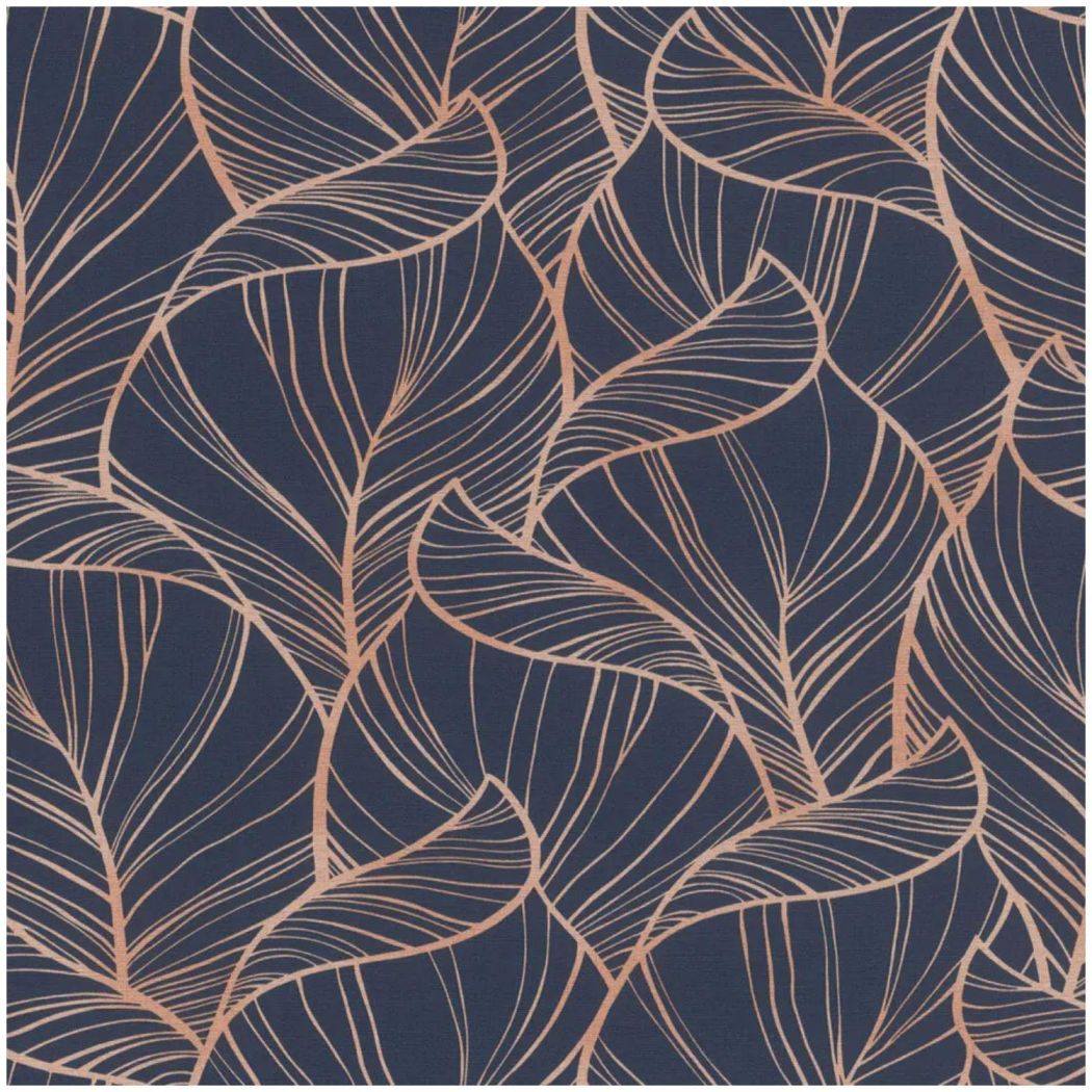 The Rhapsody Navy Blue Leaves Paste the Wall Wallpaper brings a luxurious and modern touch to any interior. Featuring a rich navy backdrop, this textured wallpaper is adorned with elegant palm leaves outlined in shimmering metallic rose gold. The striking contrast between the deep blue tones and warm metallic detailing creates a sophisticated statement, perfect for adding depth and glamour to living rooms, bedrooms, or feature walls. Easy to apply and beautifully designed, it transforms any space into a chic, contemporary retreat.